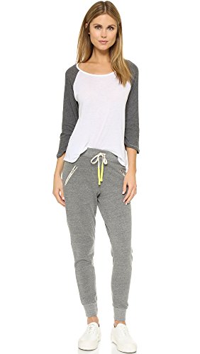Exposed zippers secure the hip pockets on these lightweight SUNDRY sweatpants. Covered elastic waist with dip-dyed drawstring closure. Ribbed cuffs.