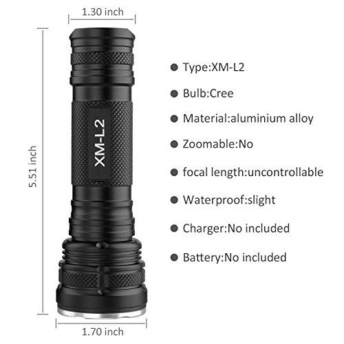 - MATERIAL: The Led flashlight tpye is XML-2, The shell is aluminum alloy, light beads is cree, Lenses are made of optical lenses, It's a perfect high quality Led flashlight.