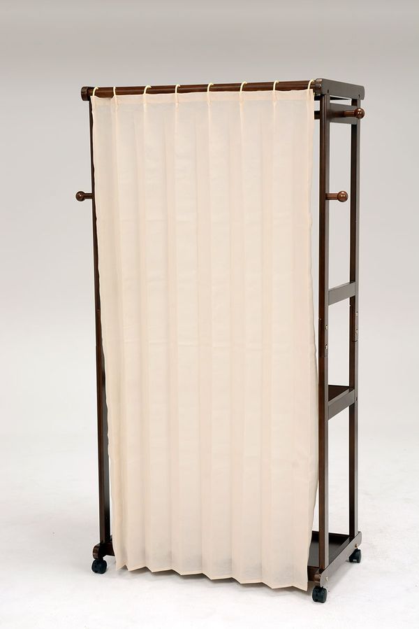 ●アウターや折りシワを付けたくない服の収納に。サッと目隠しできるカーテンと帽子やポーチをかけられるサイドフック付き。