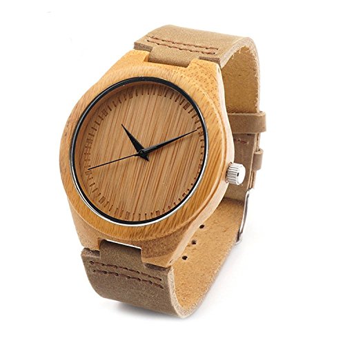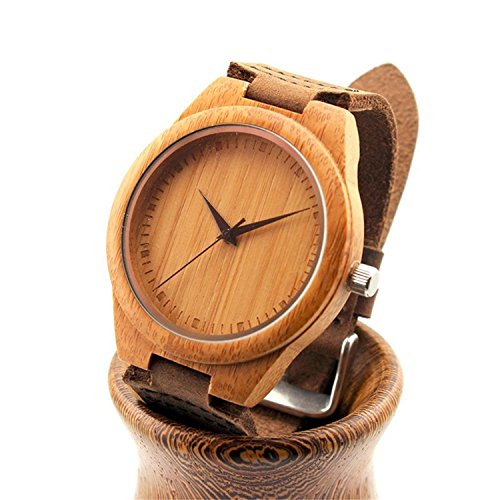 COOFEEL 목제 손목시계 우드 워치 대나무의 목손목시계 여성 시계 맨즈 아날로그 손목시계 가죽 밴드 천연목 크리스마스 선물 선물