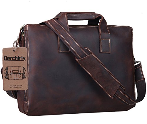 -. Binding : Electronics -. Brand : Berchirly -. Color : Deep Coffee -. EAN : 0702334717448 -. Feature : Material: Top layer Crazy Horse genuine cow leather / Product Dimensions: 15.35"(39cm) L x3.93"(10cm) D x 12.20"(31cm) H / Shoulder Strap Lenght: 91-153cm / Berchirly Leather Bag is the best choice for boys men / girls women. Simple and practical briefcase, can hold up to 15.4" laptop; Classic retro style briefcase, general used for male in daily life, business or travelling / Brand new items only. Fast and friendly service. We ship most items by USPS from China. Usually it takes 7-15 workdays to be delivered. -. Label : Berchirly -. Manufacturer : Berchirly -. Model : Berchirly -. MPN : Berchirly -. PartNumber : Berchirly -. ProductGroup : PC Accessory -. ProductTypeName : ACCESSORY_OR_PART_OR_SUPPLY -. Publisher : Berchirly -. Studio : Berchirly -. Title : Leather Briefcase,Berchirly Men's Premium Retro Laptop Messenger Bag Carrying Handbag Tote for Men Fits 15.4 Inch Laptop w/ Soft Leather Shoulder Strap -. UPC : 702334717448