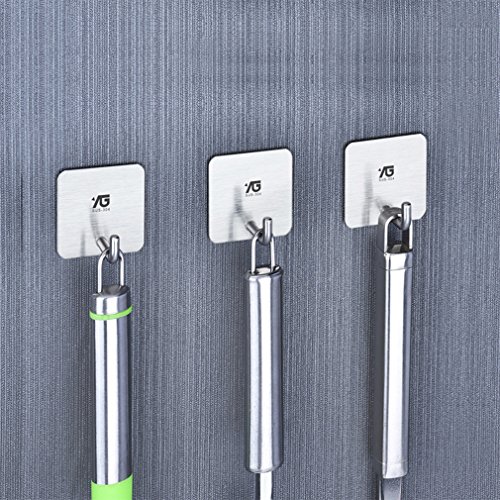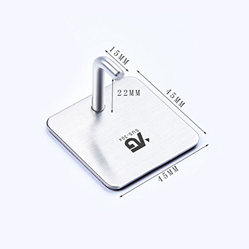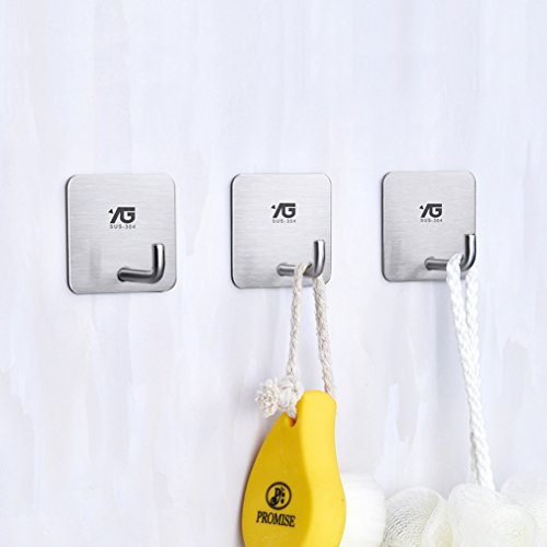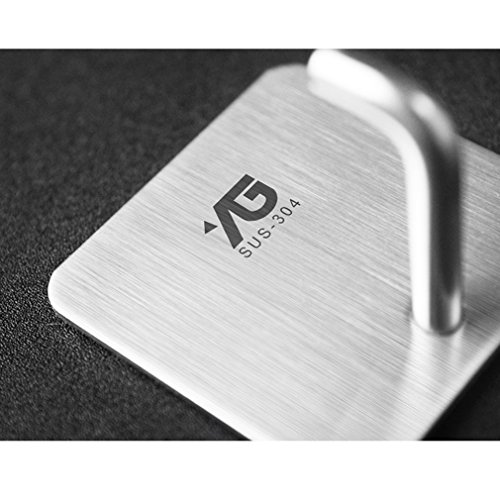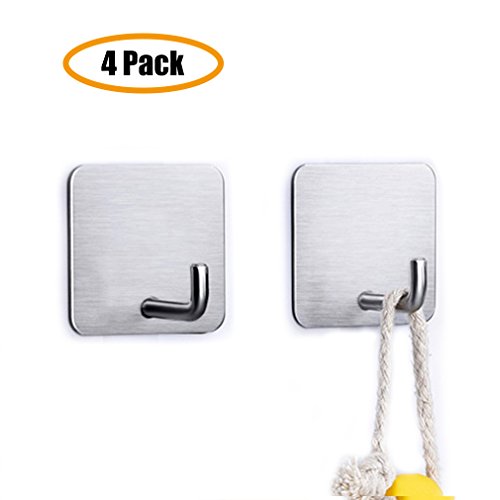 Wall Mounted Hooks 3M Self Adhesive Holder For Hanging Coats Towels Clothes - Brushed Stainless Steel (4 Pack)