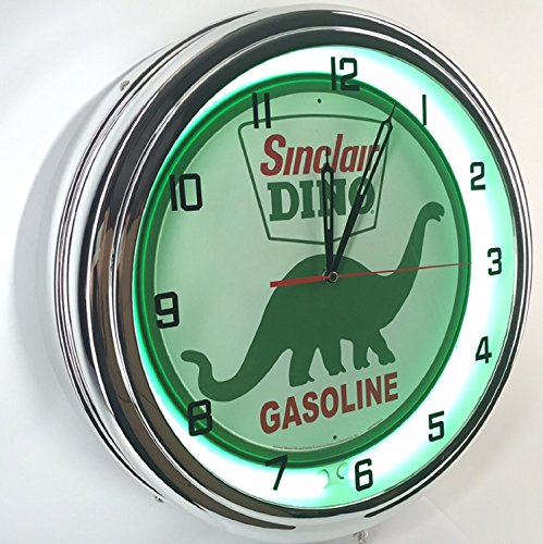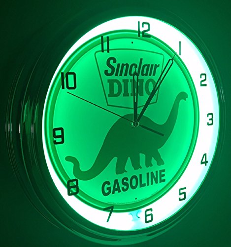 -. Binding : Kitchen -. Brand : Sinclair -. Color : Green -. EAN : 0799471420287 -. Feature : BEAUTIFUL NOSTALGIC 15 inch hand blown green neon ring antique gas station clock with classic style! / MAKES A GREAT GIFT for that special someones garage, kitchen, man cave, game room or kid's room. / GREEN NEON to match with the theme color makes a great gift or baby night light / 100% SATISFACTION GUARANTEE 1 year warranty with 1000's sold to very happy customers! / HIGH PRECISION QUARTZ CLOCK MOVEMENT with Sweep Technology (NO TICK TOCK NOISE. Smooth, 100% Quiet) -. IsAutographed : 0 -. Label : SINCLAIR -. Manufacturer : SINCLAIR -. Model : 15 -. MPN : 1940 -. PackageQuantity : 1 -. PartNumber : 1940 -. ProductGroup : Home -. ProductTypeName : HOME -. Publisher : SINCLAIR -. Studio : SINCLAIR -. Title : SINCLAIR DINOSAUR 15" NEON LIGHT WALL CLOCK GASOLINE GAS FUEL PUMP OIL SIGN GREEN -. UPC : 799471420287