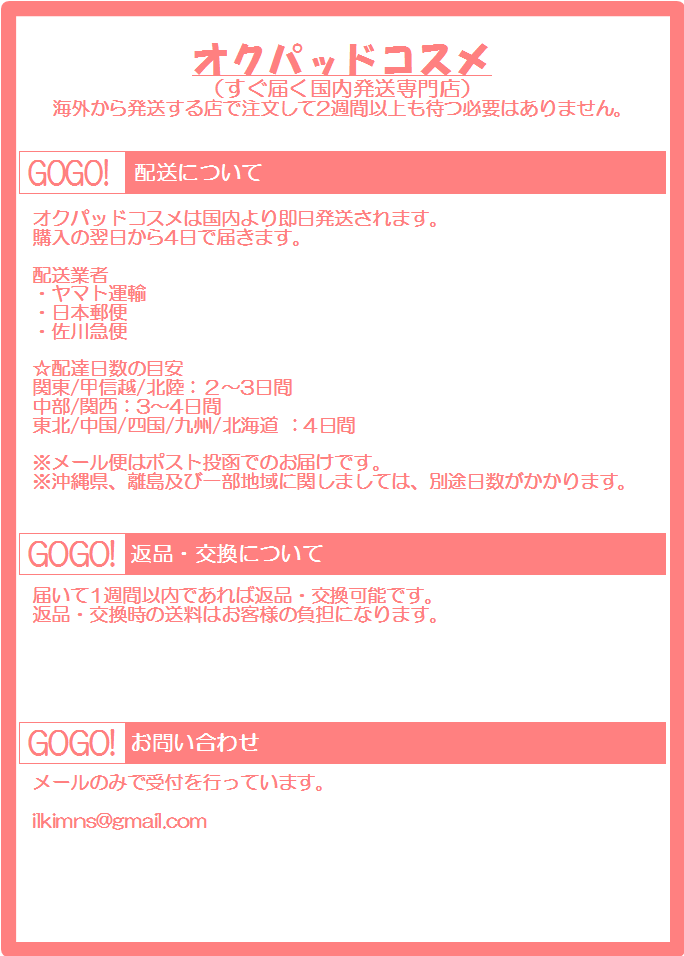 【商品説明】 お肌の老 化原因は紫外線だけではありません。 肌の熱も肌老 化には天敵です。 素扇保(ソソンボ)と言うのは、肌を保護してくれて熱を冷やしてくれる白い扇という意味で光だけでなく、熱による肌の老 化も阻んでくれる細心のアンチ エイジングケアを意味します。 肌が熱に露出すれば弾力が減少して水気を奪われて老 化が早く進行されます 。 そのために、紫外線遮断と同時に熱遮断しなければなりません。 しかし、朝メイクでクリームを塗ると化粧崩れの原因になりやすいので使わない方が多いのが現実。 「ソソンボ」は日中専用クリームで、日焼け止め(SPF30/PA++)効果+保湿+シ ワ改 善効果が優れた最近話題のアンチ エイジングクリームです。 肌の温度が上昇すること自体を前もって阻んでくれ、肌に塗った後には肌に残って持続的に熱を低めてくれる作用があります。 ※お肌の温度上昇防止+赤みや肌トーンの改 善+弾力度アップ+水分量改 善などの効果があります。 【使い方】 朝、クリームを使用する段階でお使いください。 適量を顔全体にのばした後、手のひらで顔をつつみこみ吸収を助けます。