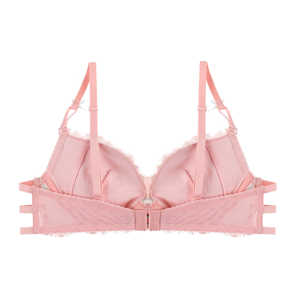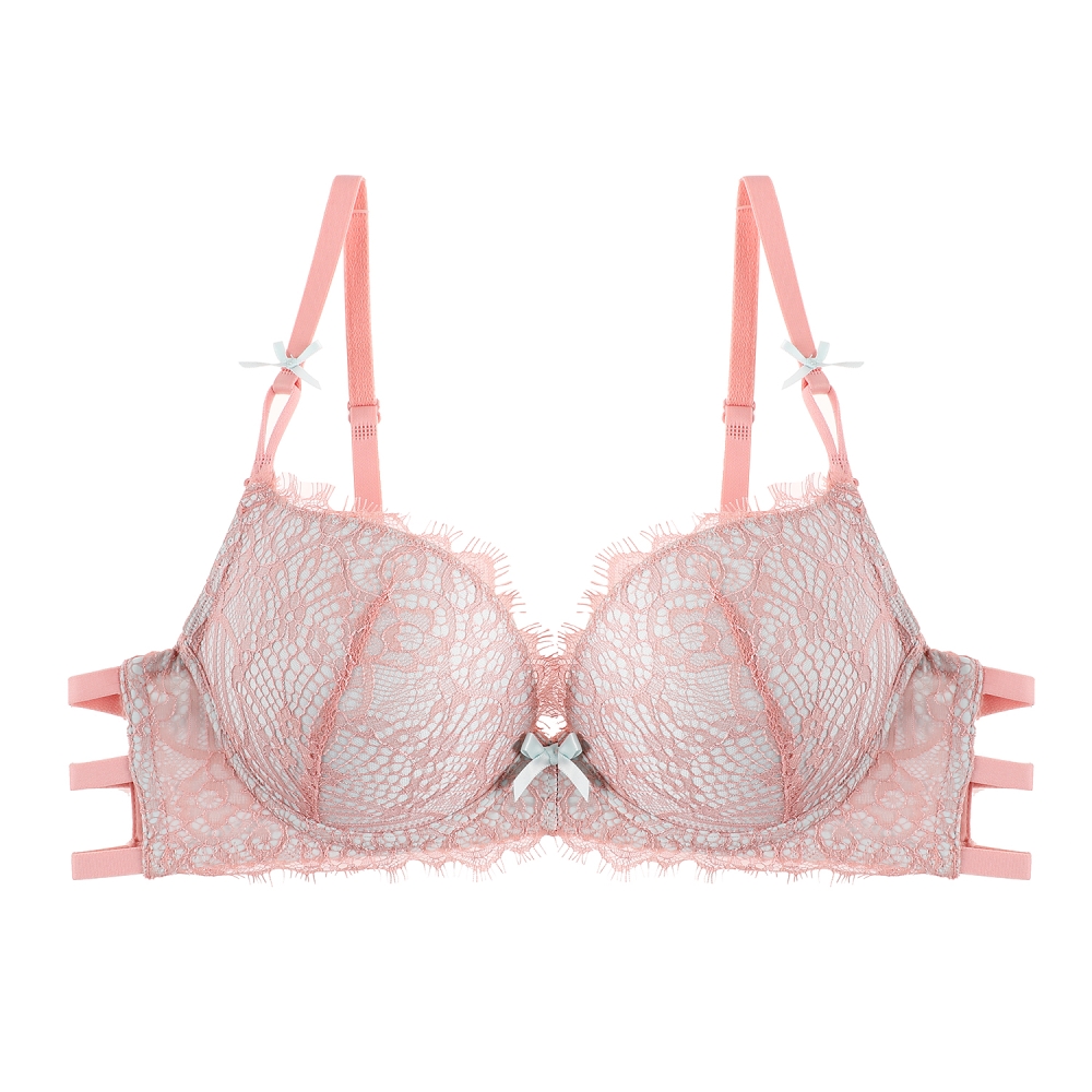 피치핑크의 눈썹리즈드 레이스와 스프링시즌 컬러인 스카이블루를 컬러매치하여 란제리 감성을 살린 제품.