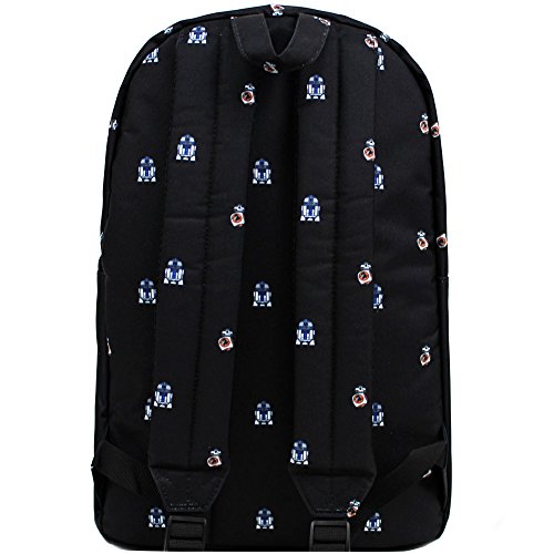 Take a look at your fave Disney characters like you've never seen them before in a new collection of super cute AOP backpacks from Loungefly. This fun BB8 R2D2 festival backpack from features a black Nylon base with all-over BB8 R2D2 graphic print, front zippered pocket, dual reinforced padded shoulder straps, fully lined interior with laptop pocket, and top zip closure.Feature