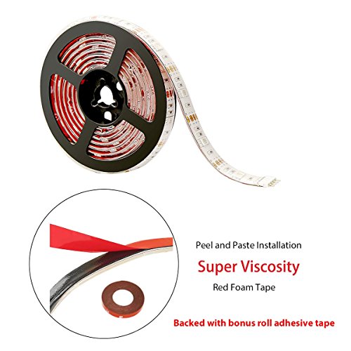 - Easy installation: Peel the super viscosity red foam adhesive tape off and paste the led light strip to where you want it to be.We even offer you bonus roll 3M tape in case it falls off in some extreme situations.The battery led strip lights are flexible,so you can create any shape as you like!
