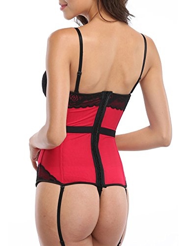 -. Feature : High quality.Elastic, soft and comfortable to wear.Hand Wash / Black/purple/blue/red(not pink)bustier with underwire cups ,sexy G-string, adjustable straps and garters.Hook and Eye closure(stockings not included) / The flexible Plastic bones give shape and support.The lingerie set will Show off all your curves ,making you more confident and charming in front of your lover / This fashion corset is widely used in wedding, christmas party, clubbing, cosplay, stage performance,intimate or naughty occasions / High Compression, 360 degree firm control on tummy and waist ,reduce your waist line up to 2 to 3 inches instantly. Creates an hourglass figure and promotes a quick post pregnancy recovery