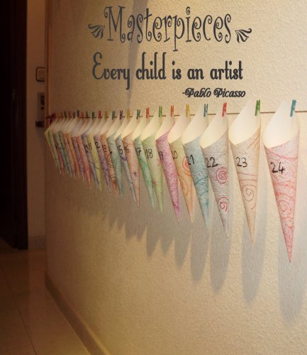 -. Title : Children Wall Decal Masterpieces Vinyl wall sticker for kids art display Every Child is an Artist Pablo Picasso Quote and
