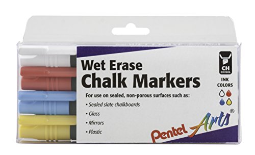 Studio : Pentel Publisher : Pentel Binding : Office Product Product Description The Pentel arts wet erase markers feature chalk-based ink that adheres to sealed, non-porous surfaces such as glass, windows, mirrors, metal, plastic and porcelain while remaining opaque. Once dry, the ink remains intact when exposed to Raindrops. Turn windows, mirrors and glass into works of art, special announcements or more. Customize plastic containers for easy storage labeling. Ink wipes off with a clean, damp cloth. Available in a variety of colors in chisel or jumbo tip. Acmi certified nontoxic. 0