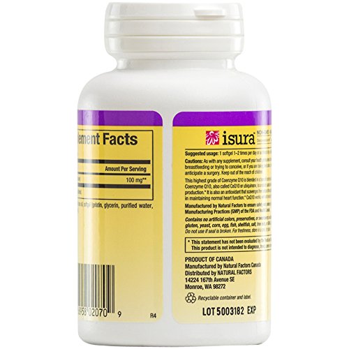 ReleaseDate : 2015-06-22 Studio : Natural Factors Publisher : Natural Factors Binding : Health and Beauty Product Description Natural Factors Coenzyme Q10 in easy-to-swallow soft gel capsules uses only 100% natural CoQ10, produced from the world?s highest quality material. Unlike synthetic CoQ10, the all-natural form is identical to the body's own coenzyme Q10 for maximum bioavailability and superior effectiveness. This highest grade of Coenzyme Q10 is blended in a base of rice bran oil (not soy oil) for enhanced absorption. Coenzyme Q10, also called CoQ10 or Ubiquinone, is a natural substance essential to cellular energy production. It is also an antioxidant which scavenges free radicals throughout the body. CoQ10 works well with Vitamin E and other antioxidants to support a healthy cardiovascular system. 0