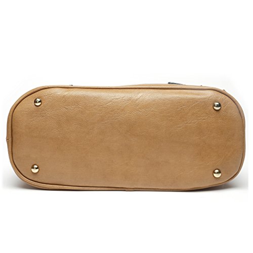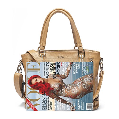 High quality synthetic leather with fabric lining. Classic gold hardware. Zipperd closure.