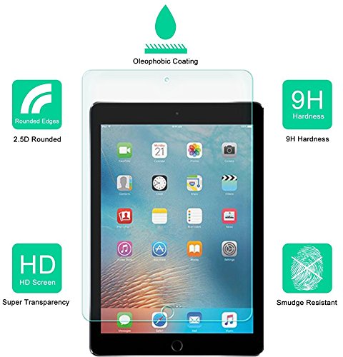 iPad 9.7" (2017) / iPad Pro 9.7 Inch / iPad Air / iPad Air 2 Tempered Glass Screen Protector, Dmax Armor [Tempered Glass] 0.3mm 9H Hardness, Anti-Scratch, Anti-Fingerprint, Bubble Free, Ultra-clear