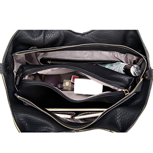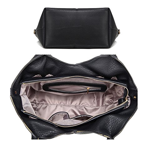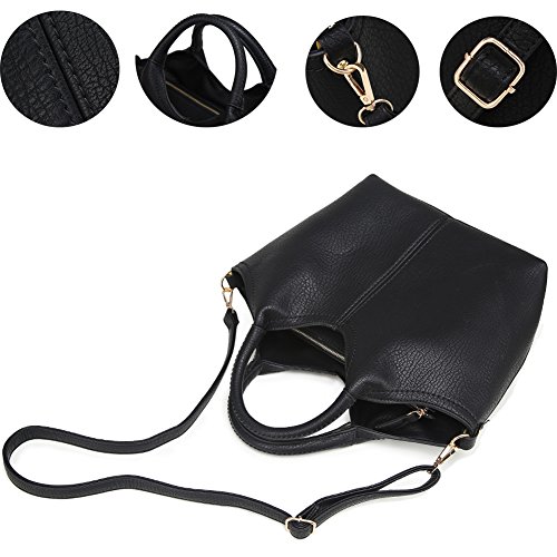 Tote Purses and Handbags Set for Women Top-Handle Bags Crossbody Satchel Over the Shoulder for Ladies with Long Strap PU Leather Easter Gift (Black)