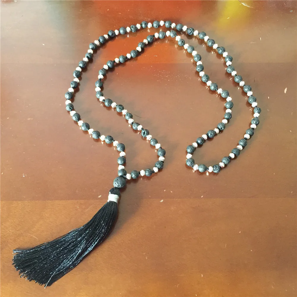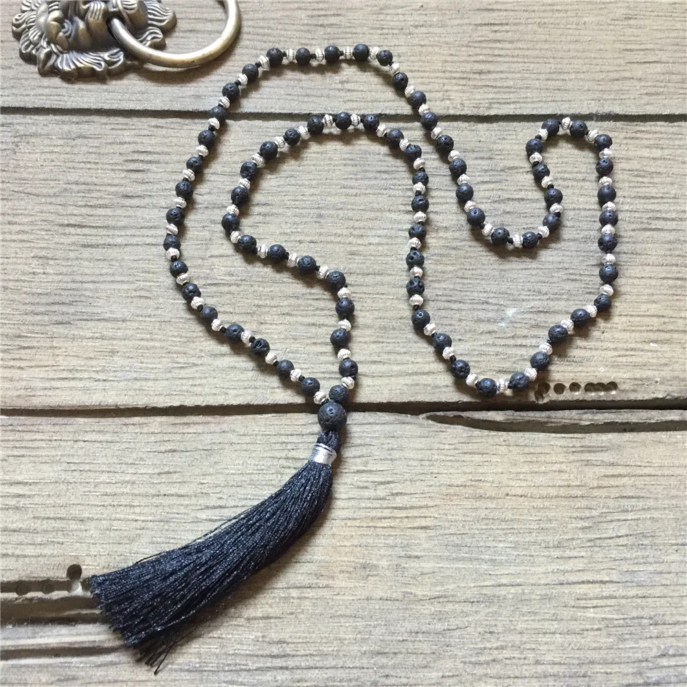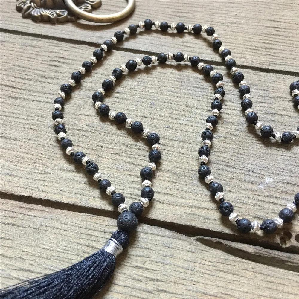 Feature:long necklace vintage, necklace mala beads, black lava stone beads