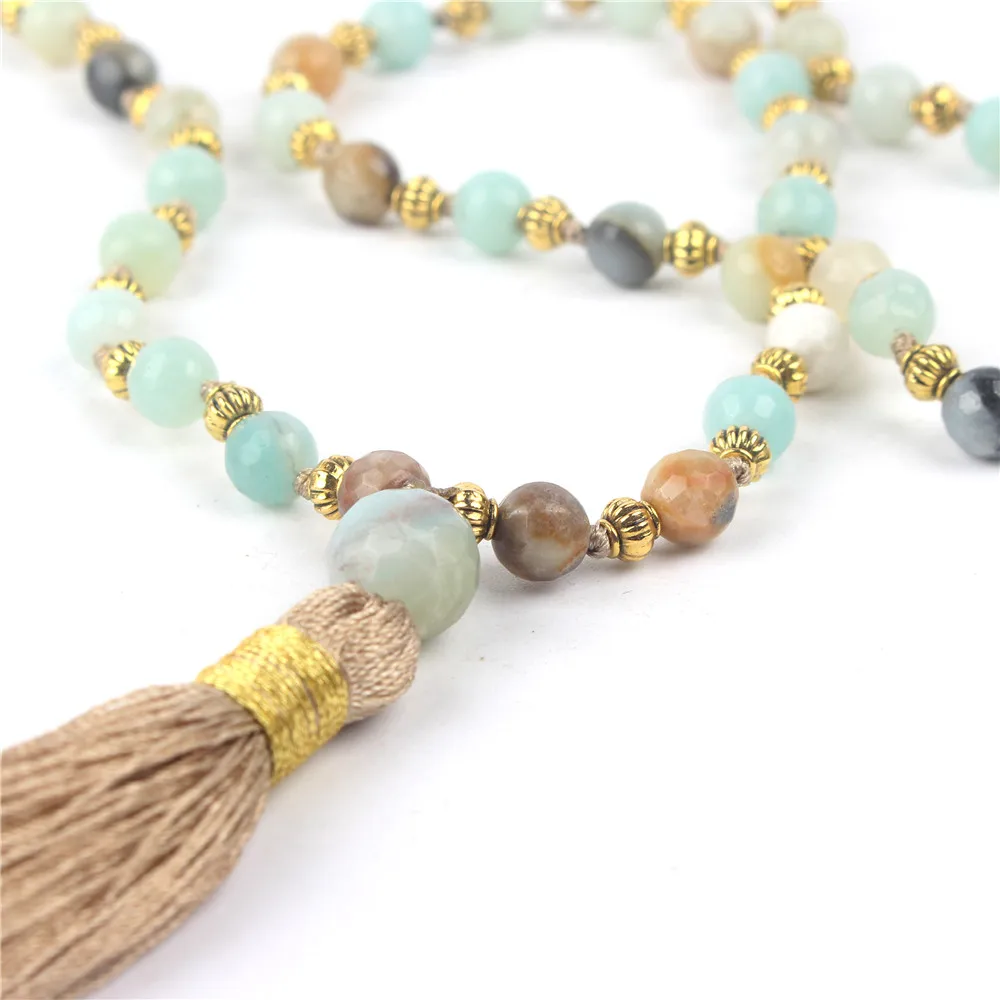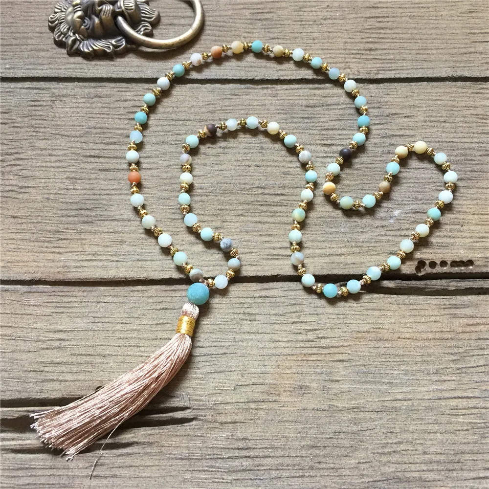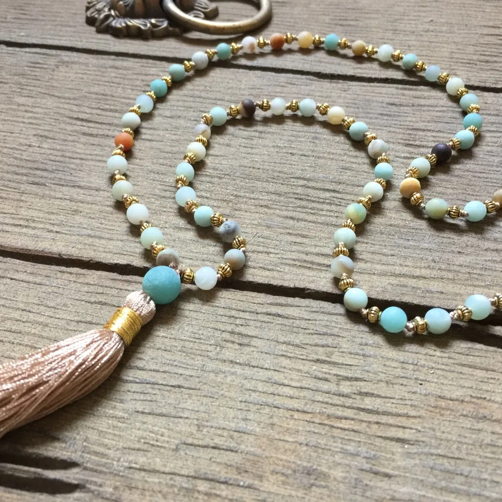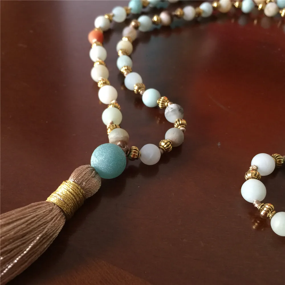 Stone:amazonite beads, black lava stone, volcanic rock, mala matte beads