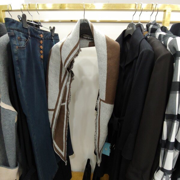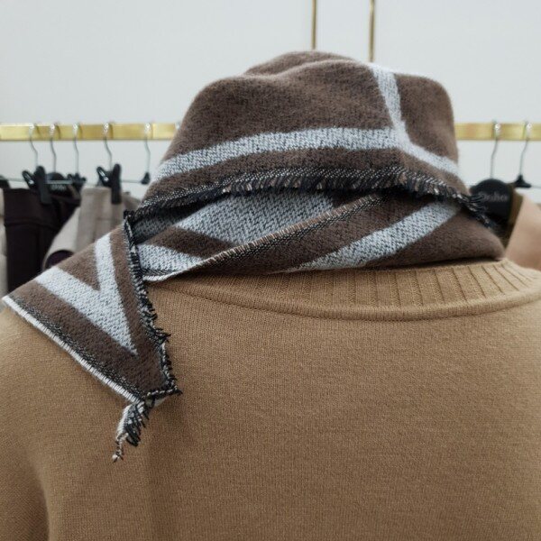 기하학적인 프린트가 특징인 히피 스타일의 머플러 입니다