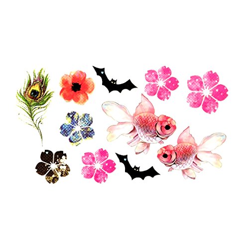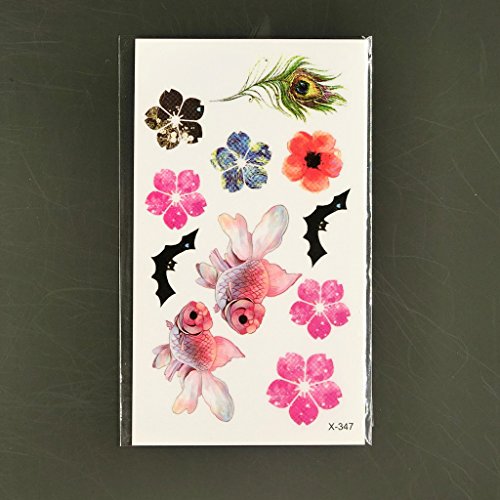 Oottati Small Cute Temporary Tattoo Goldfish Flower Bat Feather Waist (Set of 2)