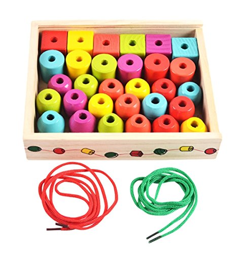 -. Binding : Toy -. Brand : Lewo -. Feature : 30 brightly colored wooden beads in 6 colors and in a variety of shapes with 2 colorful laces included / The children's beads are designed for baby's first lacing. Perfect size for baby and toddler little hand to handle it. / This educational string beading activity toy for kids helps to develop fine motor skills, dexterity and hand-eye coordination. It can be used for learning color sorting, arts and crafts. / Stored in a durable, handy wood tray, it makes clean up and travel easy for kids. Size is 8.5x7.3x1.8 inches / Suitable for 2 players. A ready to go Busy Box for easy travel. Recommended for children 3 years and up -. IsAdultProduct : 0 -. Label : Muwanzi -. Manufacturer : Muwanzi -. MPN : LE153 -. PartNumber : LE153 -. ProductGroup : Toy -. ProductTypeName : TOYS_AND_GAMES -. Publisher : Muwanzi -. Studio : Muwanzi -. Title : Lewo Wooden Toddlers Toys Large Jumbo Lacing Beads Montessori Educational Toys 30 Pcs with 2 Laces