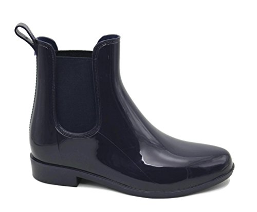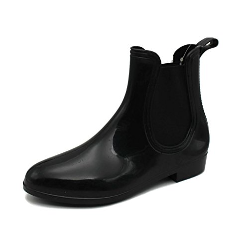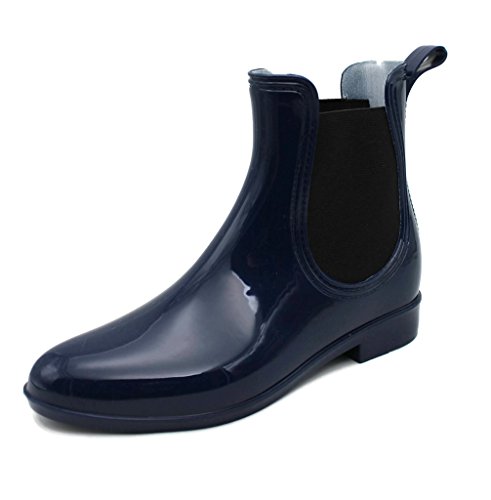 Mobesano Women's Ladies Shiny Short Ankle High Rain Winter Boots Booties Black Navy Elastic Des...