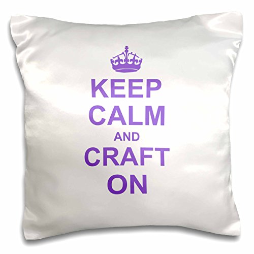 3dRose Keep Calm and Craft on - carry on crafting - gift for crafters - purple fun funny humor humorous - Pillow Case, 16 by 16-inch (pc_157702_1)