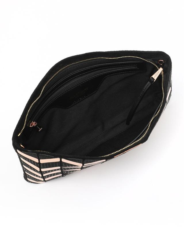 탈착 가능한 체인 크로스끈이 있어 클러치백과 크로스백 2way로 활용 가능하며, 유니크한 외관으로 포인트 주기 좋은 아이템입니다.
