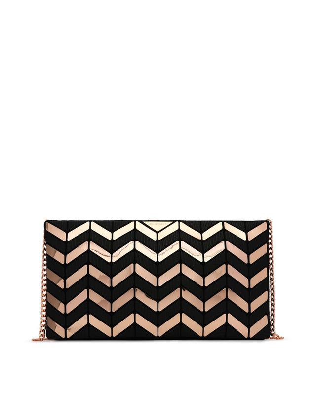 질스튜어트만의 로젤라 패턴을 미러 프리즘으로 연출하여 유니크한 외관의 클러치백 겸용 미니 크로스백입니다.