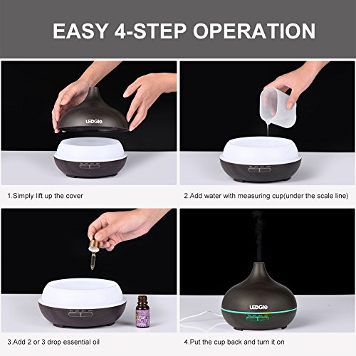 Our Ledgle Essential Oil Diffuser uses ultrasonic waves to instantly vaporize the water and essential oil in the tank, producing a cool, dry and fragrant mist.