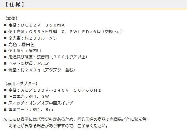 | アルミボディ&コンパクトサイズのクリップライトです。ヘッド部は約350度の角度調節が可能ですので、光の向きを自由に変えられます。中間スイッチ付きなので、オン/オフが簡単にできます。 |