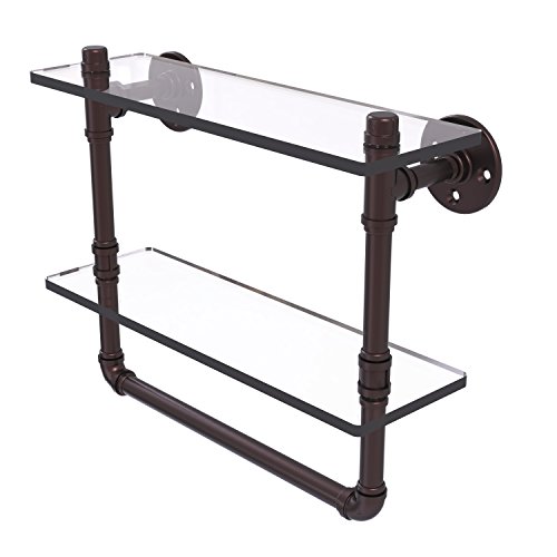 Allied Brass P-430-16-DGSTB-ABZ Dottingham Collection 18 Inch Towel Bar with Integrated Hooks Pipeline Double Glass Shelf, 16"
