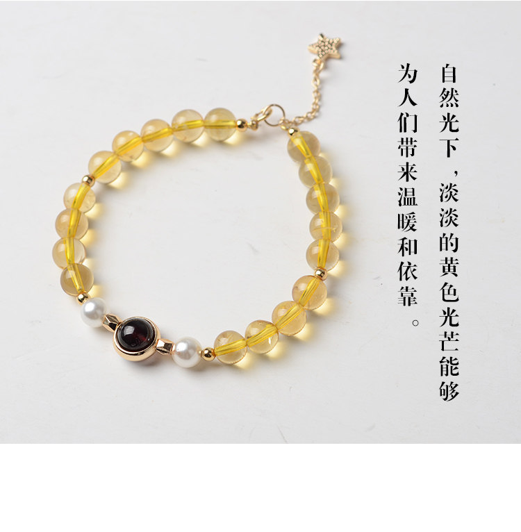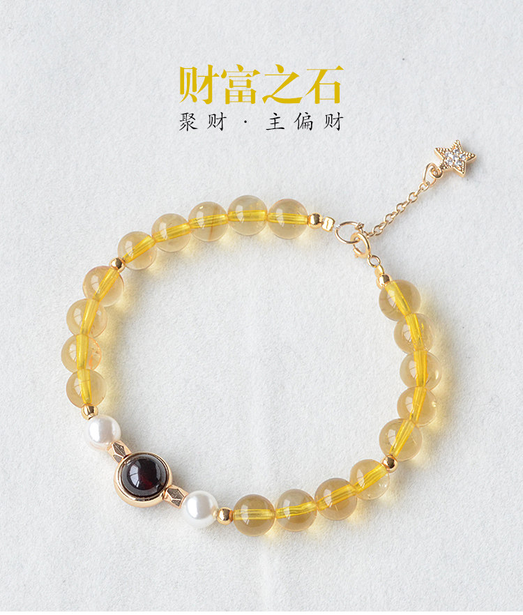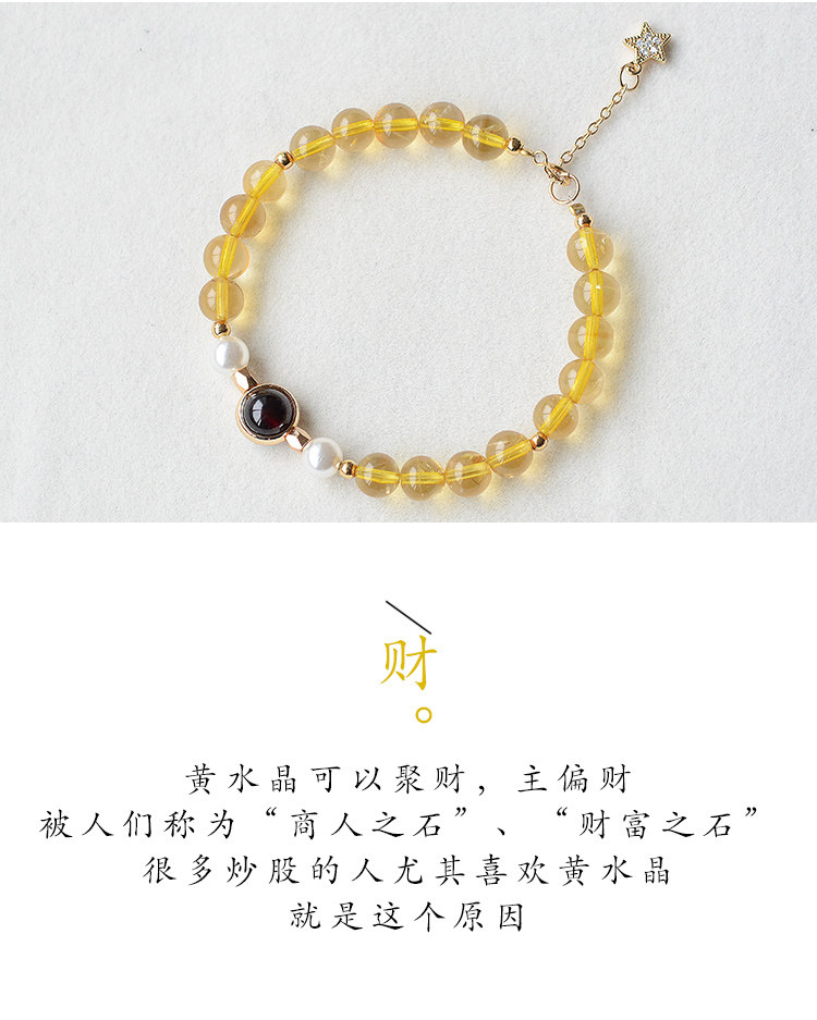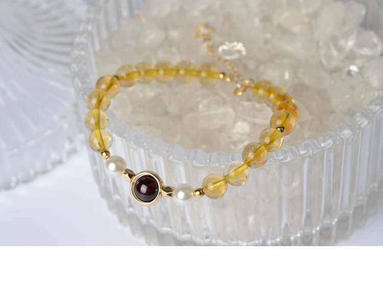 天然黄水晶手链单圈女款 黄水晶珍珠石榴石单圈手串招财