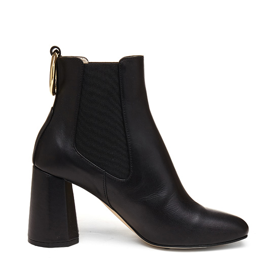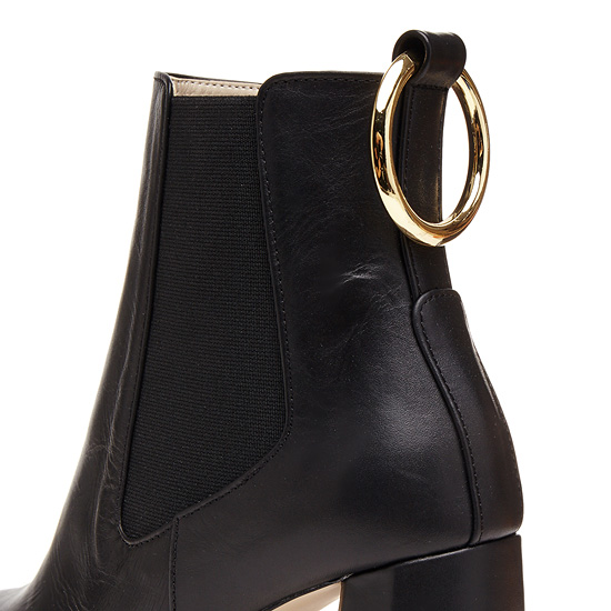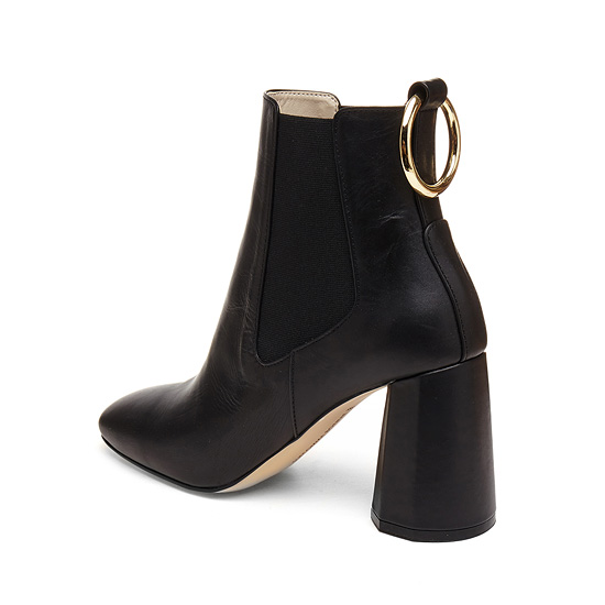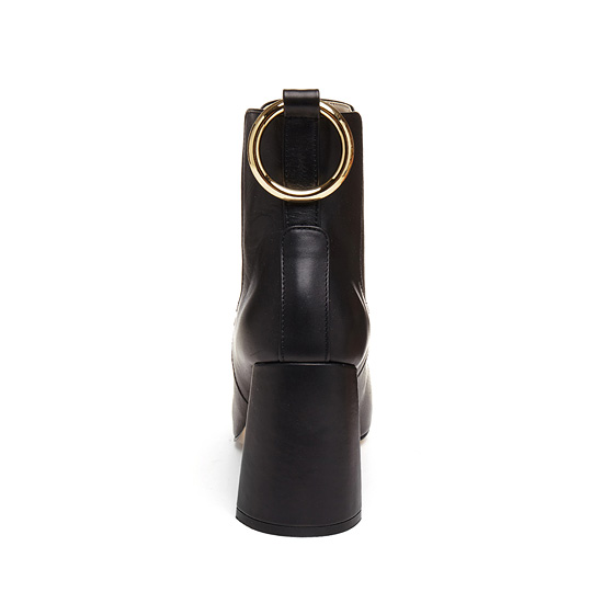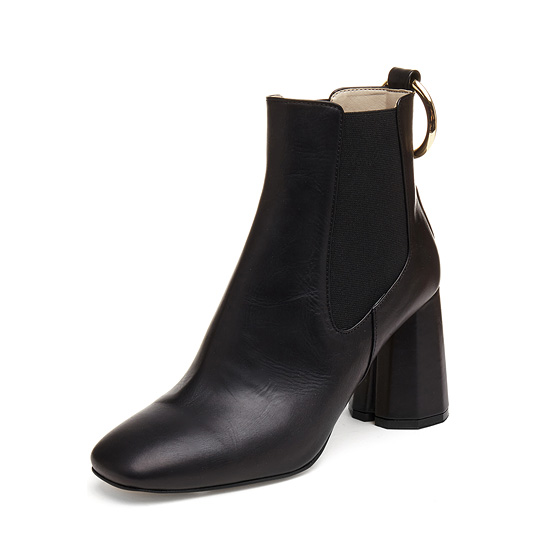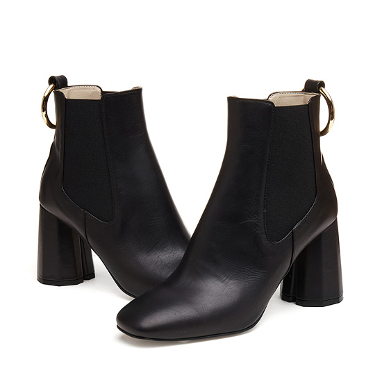 - 매끈한 라인에 골드링 장식이 포인트인 앵클 부츠.- 깔끔한 스퀘어 토에 발목을 타이트하게 잡아주어 슬림한 다리라인을 연출.- 데님부터 와이드 팬츠까지 웨어러블하게 연출이 가능한 데일리 아이템.