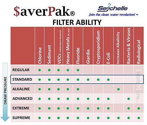 It removes up to 99.99% of contaminants and pollutants found in fresh water supplies including Aesthetics such as chlorine, Sediment and dirt; Chemicals (VOC's) such as DDT, MTBE, Benzene, Chloroforms (THM's); Dissolved Solids (heavy metals) such as Arsenic, Lead, Mercury, Copper, Zinc, Aluminum, Chromium 6 and up to 99.9% of Biologicals (pathogens) such as Giardia and Cryptosporidium. Removes up to 90% of fluoride. (Not to be used with salt water)