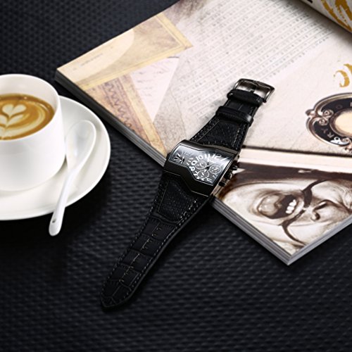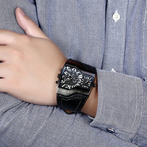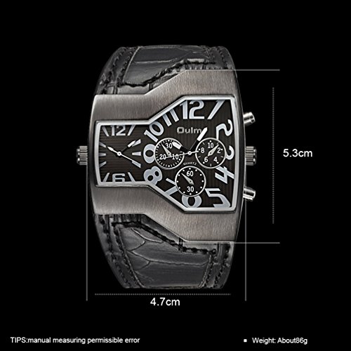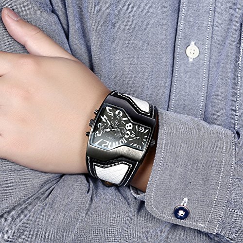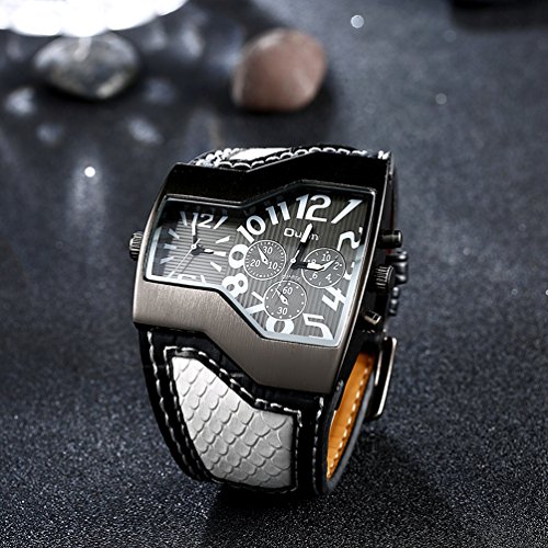 -. Title : Men's Unique Military Sports Watch Dual Time Zone Quartz Wristwatch with Snake Leather Strap, Japan Quartz