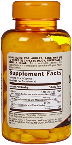 Sundown offers a high-potency Calcium / Magnesium / Zinc supplement that delivers 1000 mg Calcium, 400 mg Magnesium and 25 mg Zinc for optimal absorption.* Calcium is the primary mineral responsible for strong bones.* Magnesium plays a role in proper bone mineralization, muscle contractions and nerve impulses.* Zinc helps support immune function and plays a role in over 300 enzymes in the body.*
