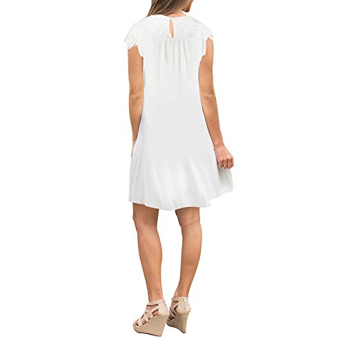 Lace stitching design with sleeveless and round neckline,keyhole back with a button t close. Sexy and elegant mini shift dress for formal work or casual party wear