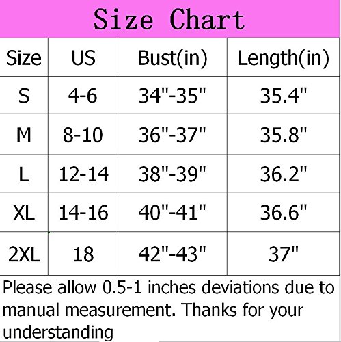 Sizes:S=US 4-6,M=US 8-10,L=US 12-14,XL=US 14-16,2XL=US 18.Please refer to Size Chart in Product Description as below for more details.