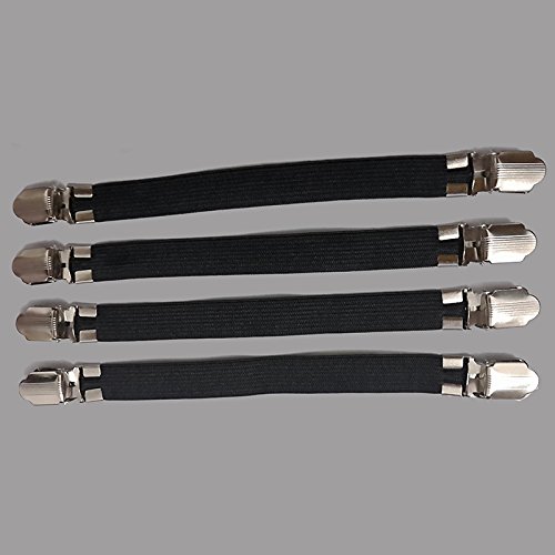 Dete Mattress Corner Bed Sheet Straps Fasteners Holder with Metal Clips A Set of 4 Straps (black)