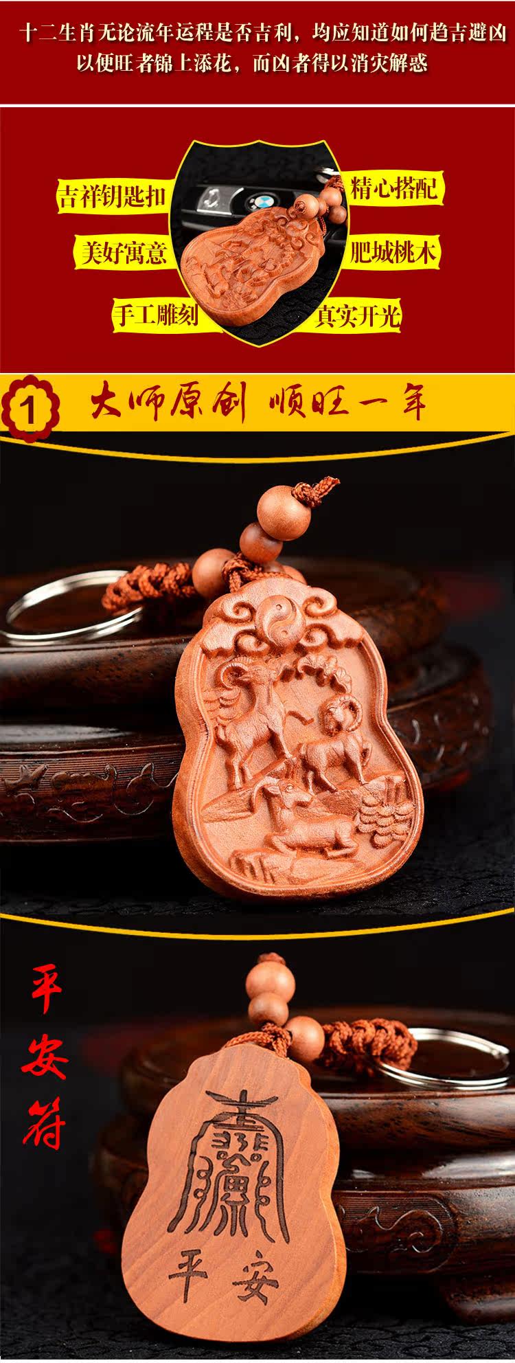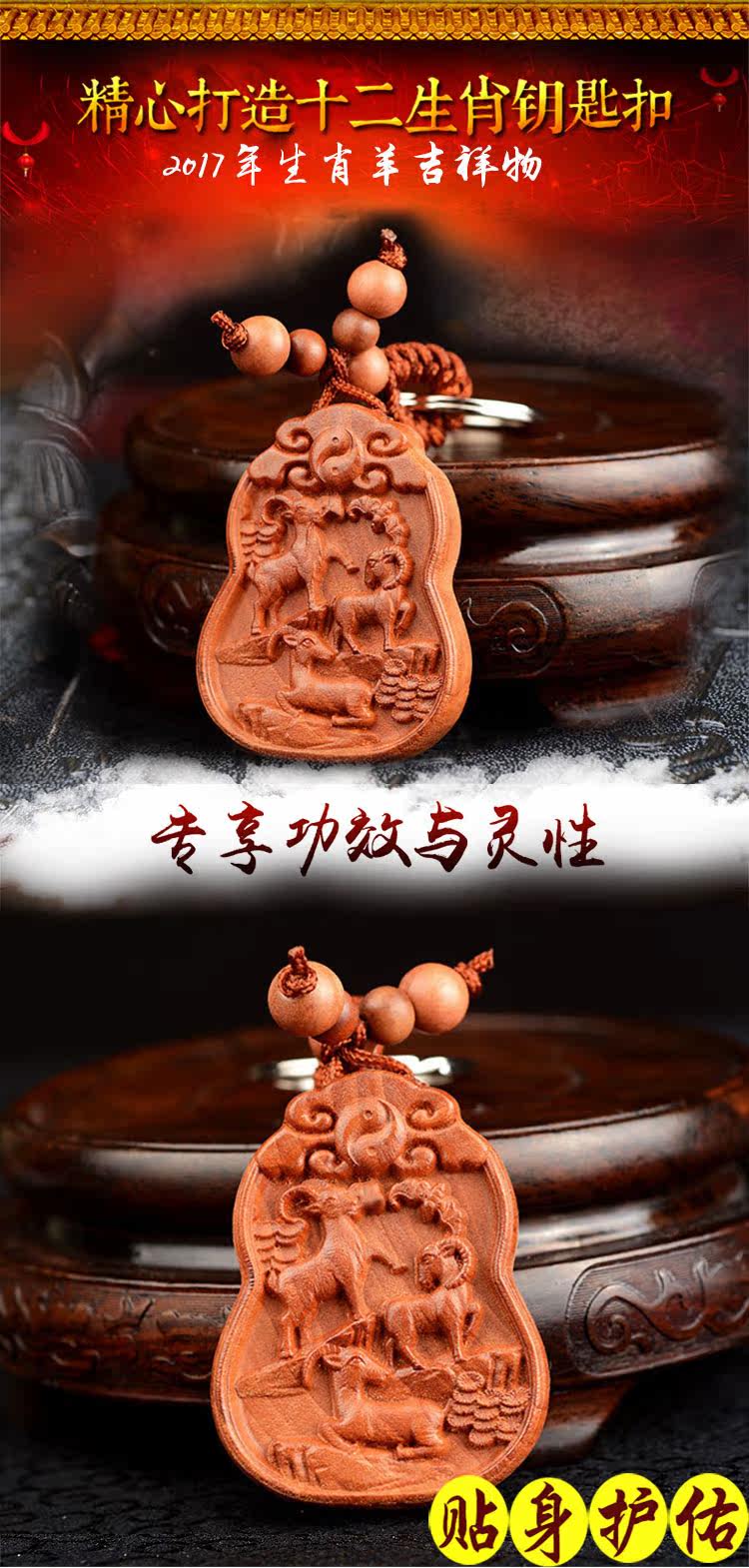 生肖属羊吉祥物桃木钥匙扣挂件汽车钥匙扣木雕挂件