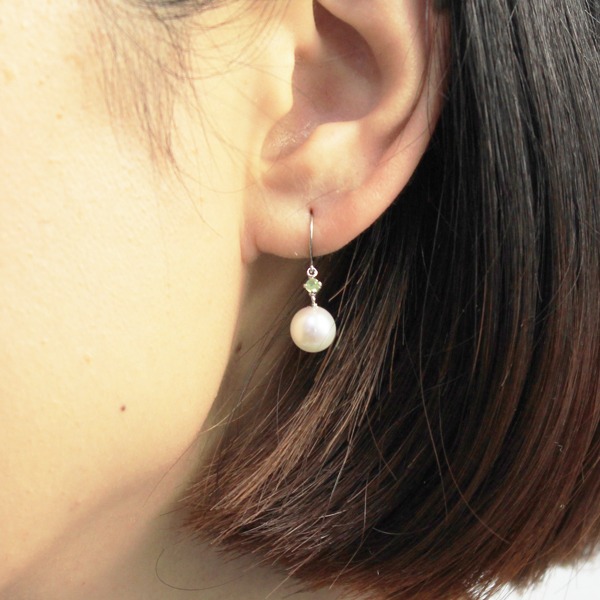 【カラット数】7mm珠真珠2石 ペリドット2石合計0.08ct