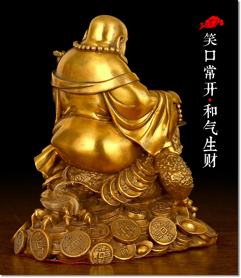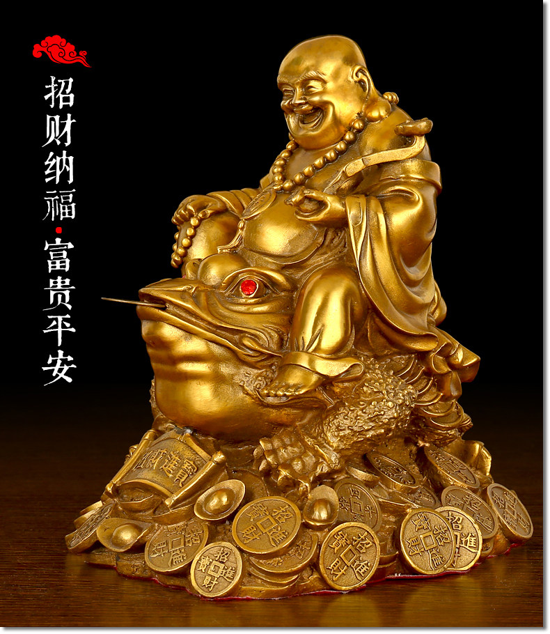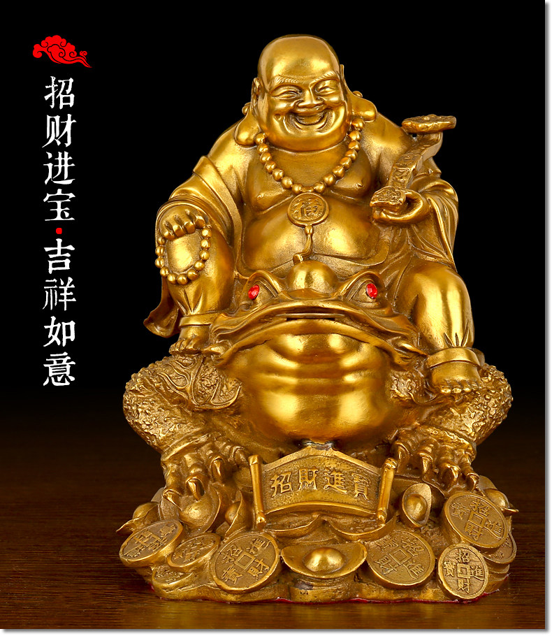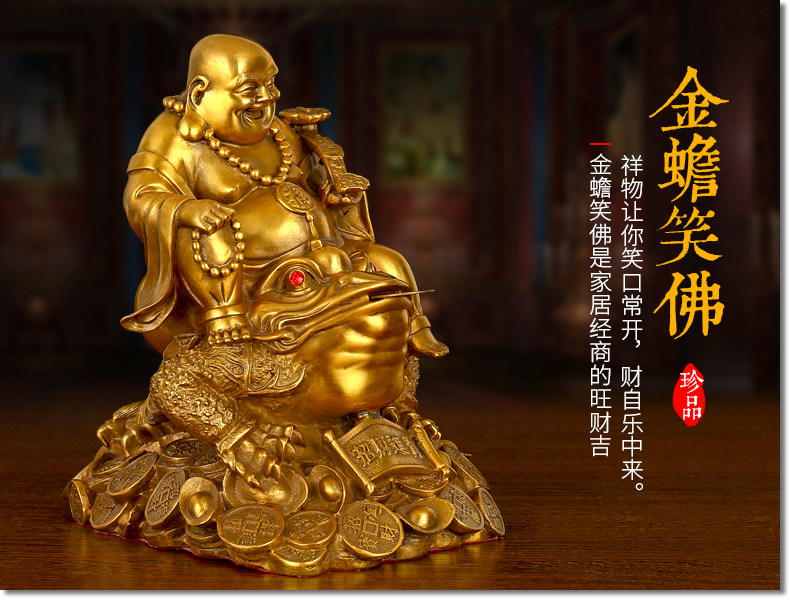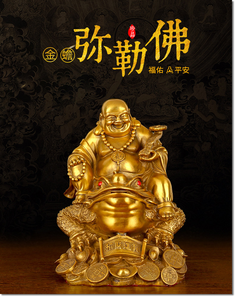 纯铜坐蟾笑佛摆件开光招财进宝三足金蟾蜍大肚弥勒佛风水办公用品