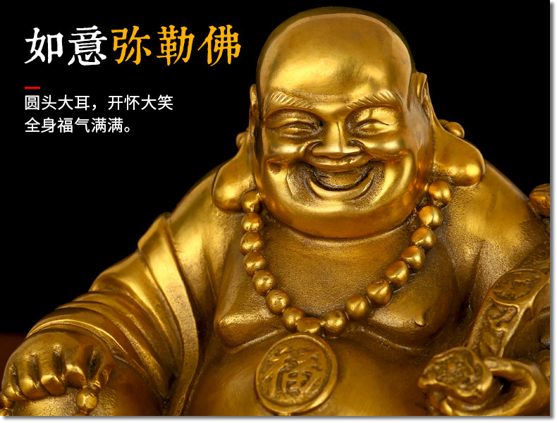 弥勒佛是民间公认的幸运佛,招财佛,弥勒佛笑容可掬,脖子上挂者纳福佛珠,托金如意,帮您聚财聚福,消灾佑福。弥勒佛是佛教里的人物。据佛经上讲,释迦在世时,弥勒在旁听法,是释迦的继承人和未来的佛。