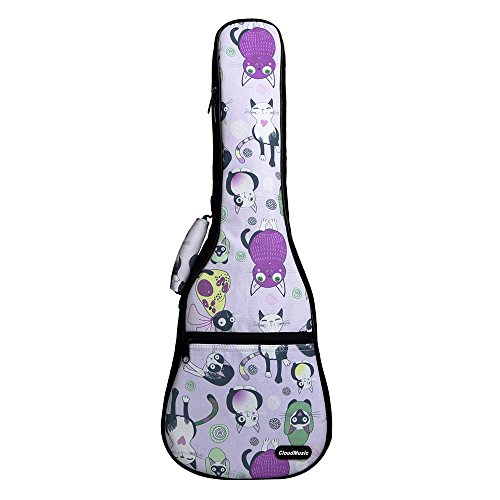 CLOUDMUSIC Colorful Animals Pattern Hawaiian Ukulele Bag Ukulele Case (Concert, Kitten Cat Purple)