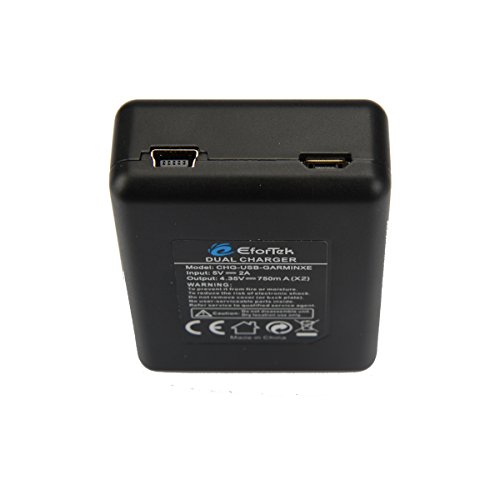 -. Binding : Electronics -. Brand : EforTek -. EAN : 0701327998581 -. Feature : Kit includes: 2 batteries and 1 Dual USB charger for the Garmin Virb X and XE / Battery Specifications: 3.8V 1280mAh, Rechargeable Li-Polymer Battery Pack / Charges two Garmin Virb X and XE camera batteries at the same time and Smart LED light indicated RED when charging and GREEN when complete / Batteries and charger are fully compatible with original Garmin Virb X and XE / Integrated Microchip Prevents Overcharging & Lengthens Battery Life and all items include a 2-year manufacturer warranty -. Label : EforTek -. Manufacturer : EforTek -. MPN : 361-00080-00 -. PackageQuantity : 1 -. PartNumber : 361-00080-00 -. ProductGroup : Photography -. ProductTypeName : CAMERA_OTHER_ACCESSORIES -. Publisher : EforTek -. Studio : EforTek -. Title : EforTek Replacement Battery (2-Pack) and Dual USB Charger kit for Garmin 361-00080-00 and Garmin Virb X and Virb XE -. UPC : 701327998581