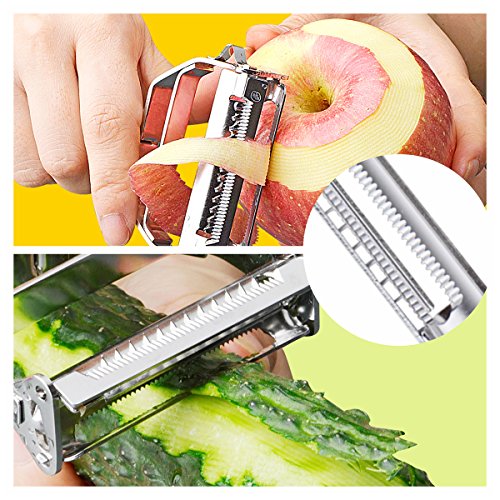 Multipurpose functions. It can be used to peel and julienne fruits and vegetables, as well as for slicing the potatoes,cucumber and carrots.