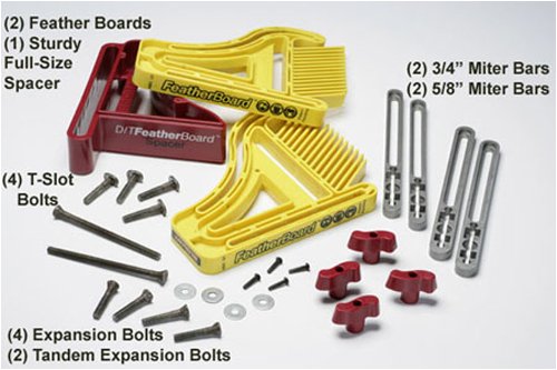 Mounting Hardware Included for nearly any dual or tandem application - 3/4-Inch and 5/8-Inch wide miter bars and t-slot bolts fit most table and band saws, router tables, and fences