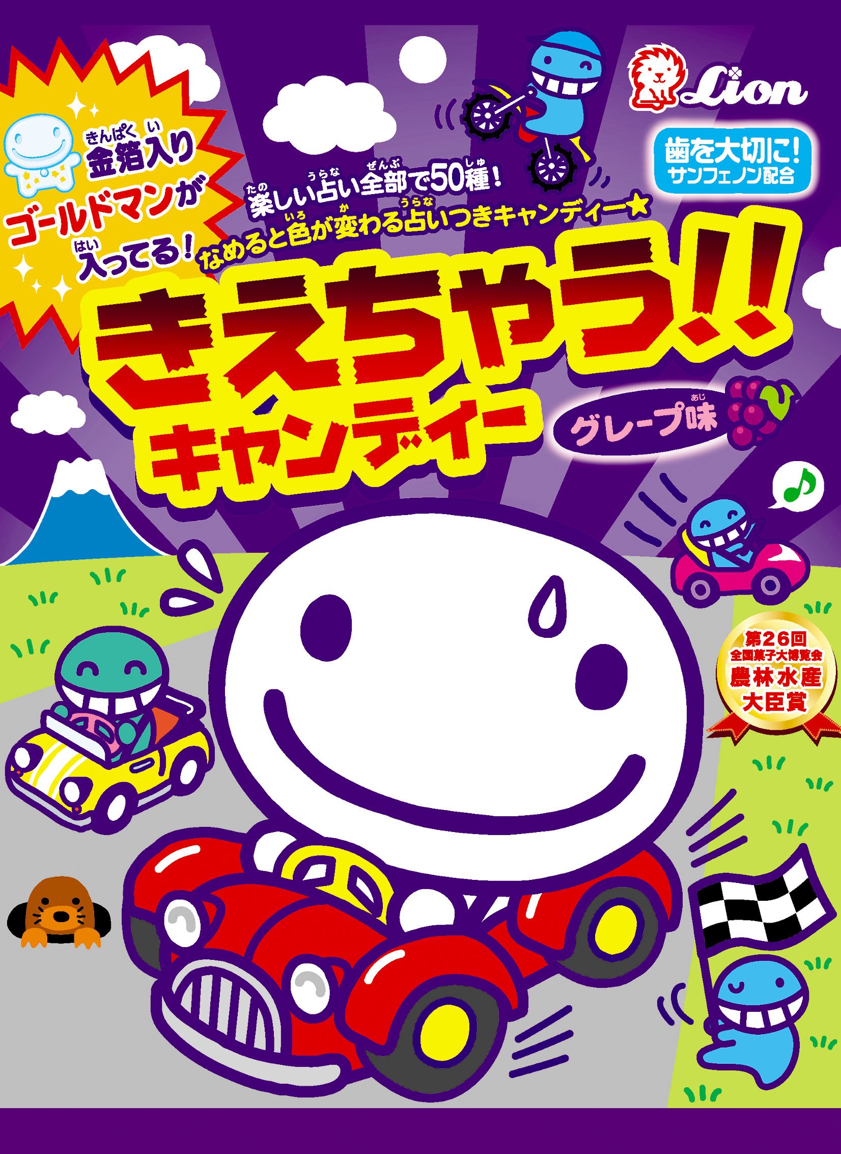 In addition to the candy where licks change color, there are large lucky gold leafed candy and unlucky Muscat candy,