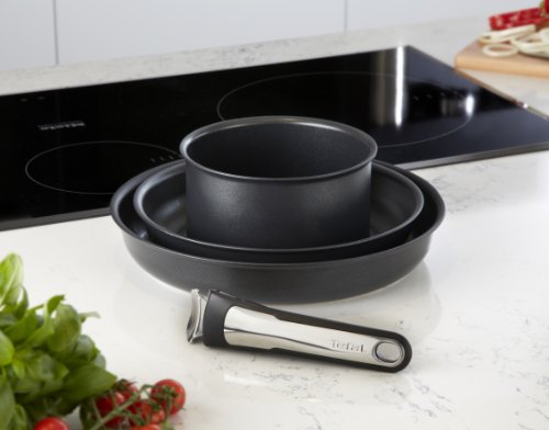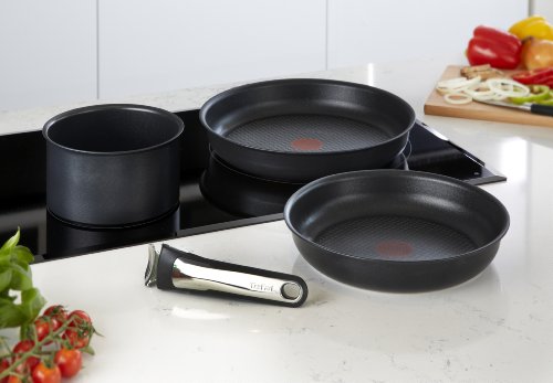 -. Binding : Haushaltswaren -. Brand : Tefal -. Color : schwarz -. EAN : 3168430193048 -. Feature : Mit ihren abnehmbaren Griffen ermöglicht die Tefal-Ingenio-Reihe vielseitige Kochmöglichkeiten und platzsparende Aufbewahrung. / Das Set von Ingenio ist für Induktionsherde geeignet und umfasst 2 Bratpfannen (24 und 8 cm), einen Stieltopf sowie einen Griff aus Bakelite mit Einsätzen aus rostfreiem Edelstahl. / Die Thermospot-Technologie von Tefal zeigt die optimale Temperatur an. / Die Antihaftbeschichtung Titanium Pro von Tefal ist für die Verwendung von Küchenutensilien aus Metall geeignet (außer Messern und Schneebesen) und hält doppelt so lange wie herkömmliche Antihaftbeschichtungen. / Spülmaschinenfest und ofenfest bis 260 °C -. Label : Tefal -. Manufacturer : Tefal -. Model : L3209642 -. MPN : L3209642 -. PartNumber : L3209642 -. ProductGroup : Küche & Haushalt -. ProductTypeName : HOME -. Publisher : Tefal -. ReleaseDate : 2014-04-01 -. Studio : Tefal -. Title : Tefal Ingenio Starter-Set Induktion, Schwarz, 4-teilig