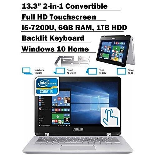 -. Title : Top Performance ASUS 13.3" 2-in-1 Touchscreen FHD Convertible Premium Laptop, 7th Intel Core i5-7200, 6GB DDR4 RAM, 1TB HDD, 802.11ac, Bluetooth, HDMI, Backlit keyboard, Fingerprint Reader, Windows 10