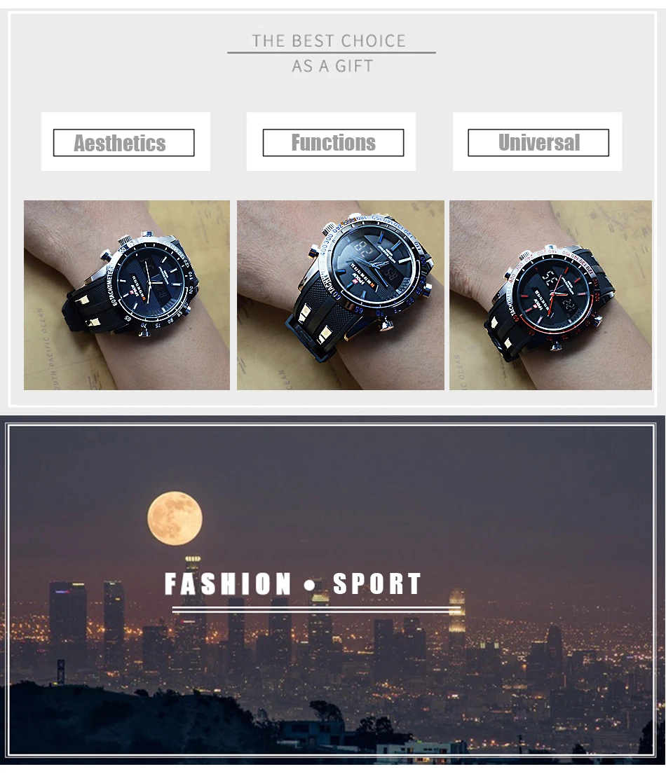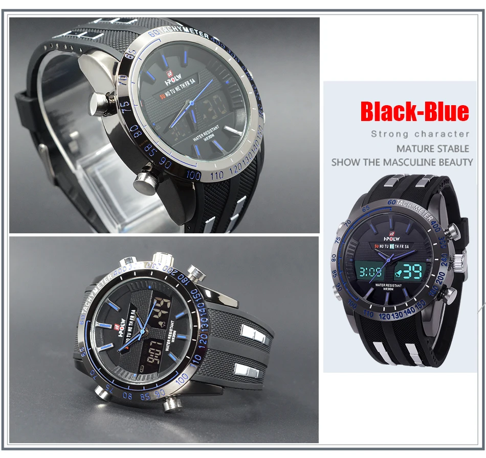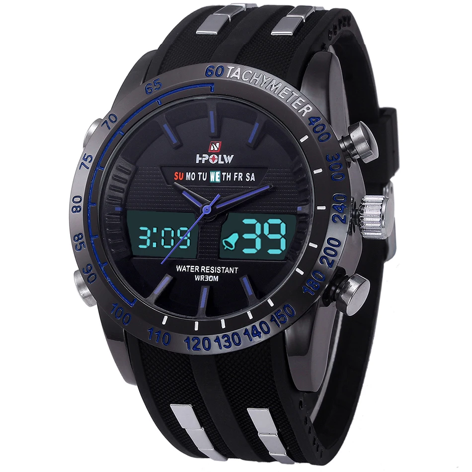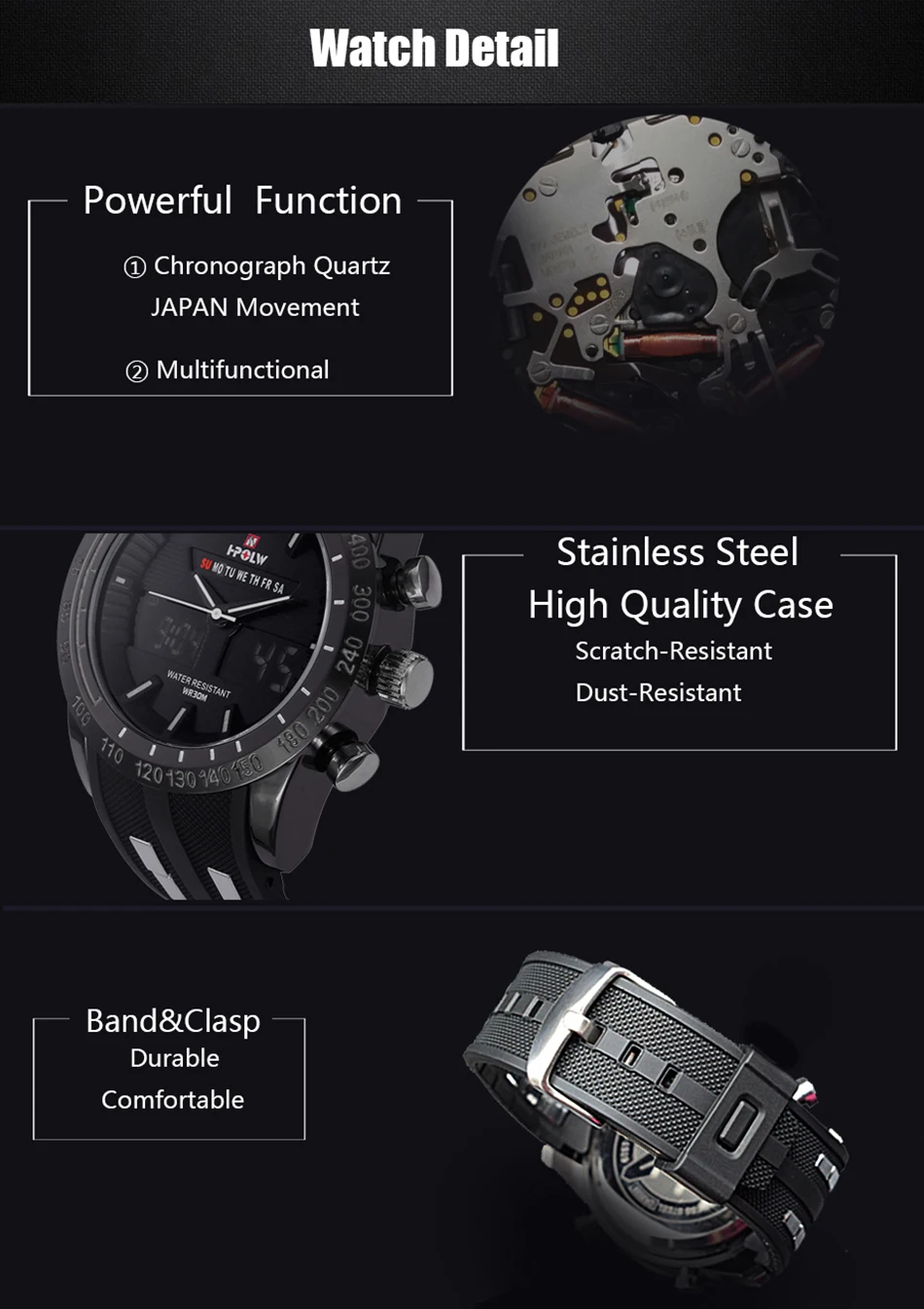 Feature:LED display,Stop Watch,Back Light,Shock Resistant,Chronograph,Auto Date,Alarm,Swim,Repeater